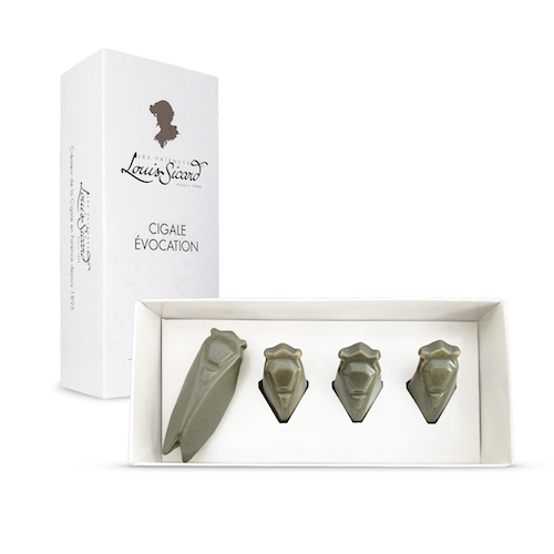 Histoire : Créée en 2015 pour les 120 ans de la création de la Cigale en Faïence. Un hommage à son illustre créateur, Louis Sicard, pour faire entrer la cigale provençale dans le second millénaire. Elle est une évocation de sa célèbre aînée aux lignes et couleurs contemporaines, alliant ainsi design et tradition.