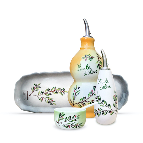 • Décor OlivierLe rameau d’olivier est un symbole Provençal qui a très tôt inspiré les créations de Louis Sicard. À l’origine créé sur un fond jaune oranger dit « Jaune Italien » , il s’est d’abord décliné sur fond vert amande pour garder l’esprit Provençal traditionnel. Aujourd’hui nous le proposons sur un fond gris ou uni blanc pour une note plus contemporaine. Le décor en lui même a également évolué, mêlant réalisme et finesse du trait.